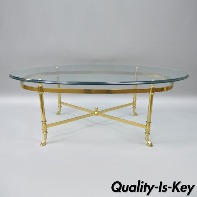Brass and glass oval coffee table vintage labarge mid century hollywood regency.